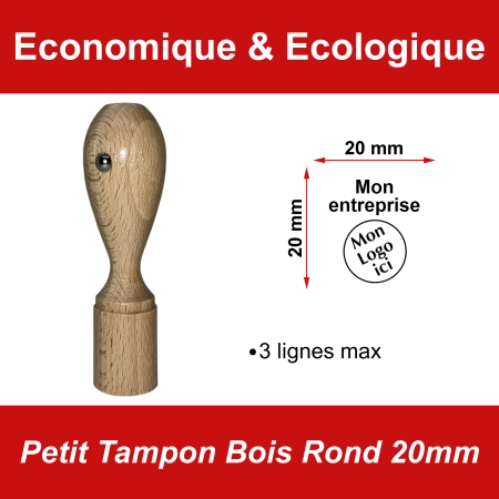 Le Tampon Bois Rond 20mm est un tampon manuel de petit format circulaire, parfait pour les marquages discrets mais soignés. Avec ses 20 mm de diamètre, il convient idéalement aux logos miniatures, initiales, symboles ou textes courts.