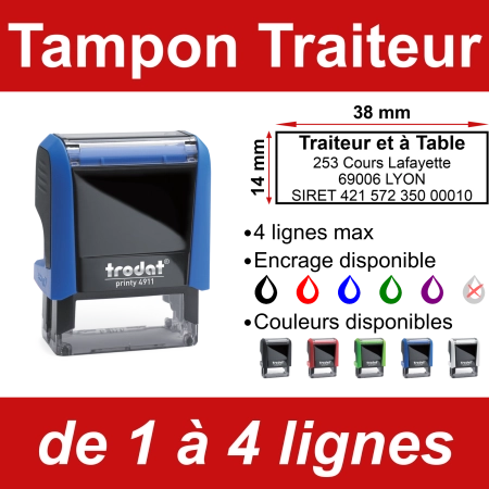Tampon Traiteur 4 lignes : empreinte nette et efficace pour devis, factures et emballages alimentaires.