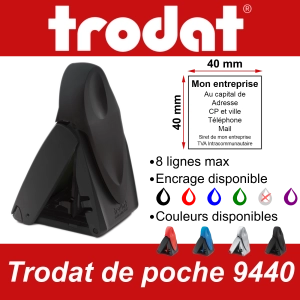 Mandat Administratif, Chèque, VirementLe tampon Trodat de poche 9440 mesure 40x40mm et peut comprendre de 1 à 8 lignes de texte personnalisé avec ou sans logo.